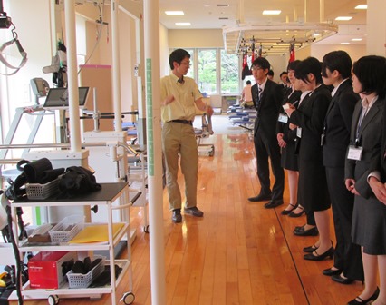 リハビリテーション室では、施設や設備を見学させていただくだけではなく、実際に理学療法士・作業療法士が患者さんにリハビリテーションを行っているところを見学することができる、貴重な体験です。