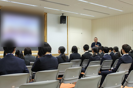 例年、院内見学の前に学生は医療法人社団輝生会会長である石川誠先生の特別講話「温故知新(医療の歴史から学ぶ)を拝聴します。