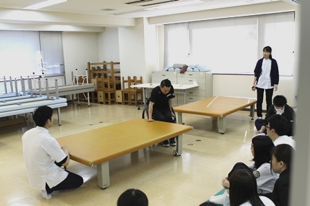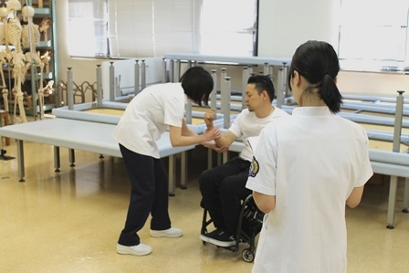 作業療法学科昼間部3年生の「日常生活活動学」の授業で、障がいのある方にお越しいただき、モデルとして授業に協力していただきました。