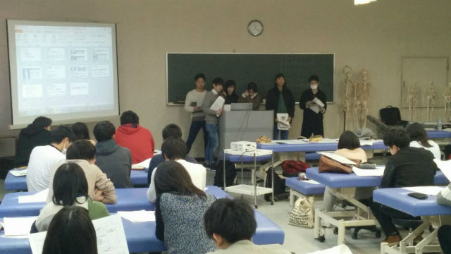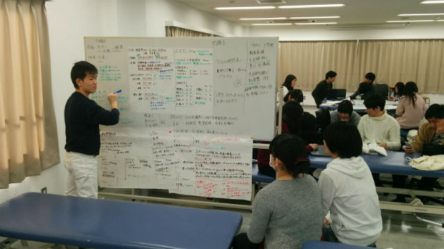 学生たちは、6~7名のグループに分かれて、グループごとにケース(症例)が与えられ、それについての課題を抽出し、療法士としてどのように関わっていくか等、その症状や対処法などを調べていきます。