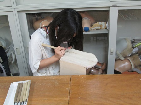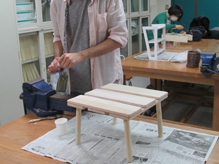 ちょっとわかりにくいでしょうか。要するに、籐細工や木工などの作品を実際に作りながら、それがどのように作業療法に活かせるかといったことを学びます。