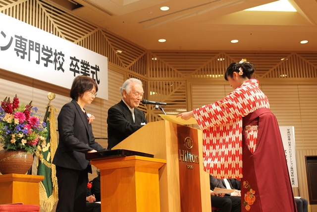 日リハの卒業式では、二瓶校長先生が卒業生一人ひとりに卒業証書を手渡ししてくれます。