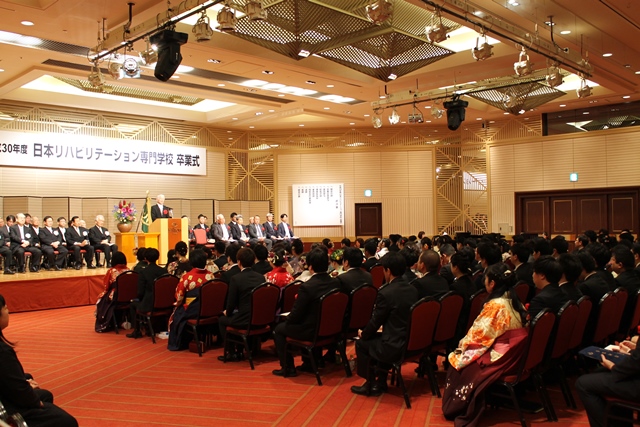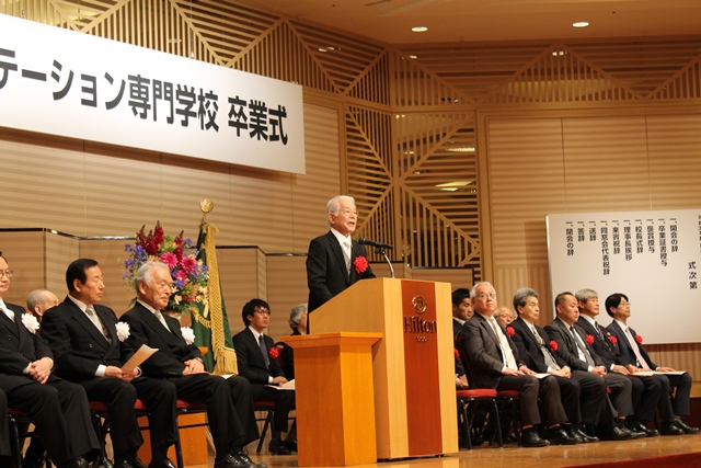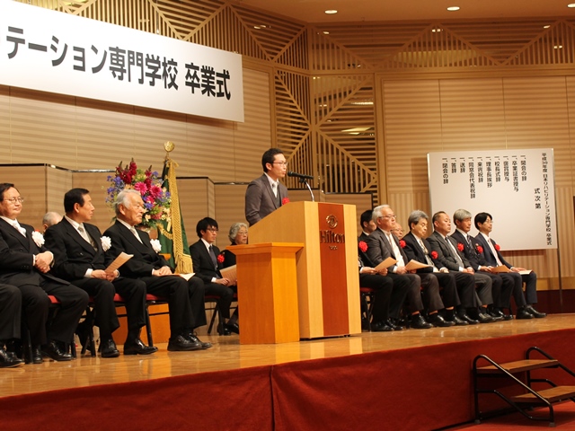 日本リハビリテーション専門学校校長の二瓶隆一先生、学校法人敬心学園理事長の小林光俊先生から卒業生にお祝いのメッセージをいただきました。