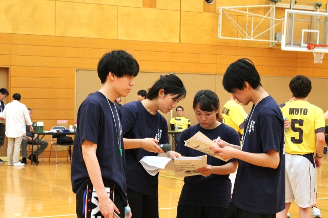 対戦の合間に、実行委員の学生も念入りに対戦結果の打ち合わせ中です。