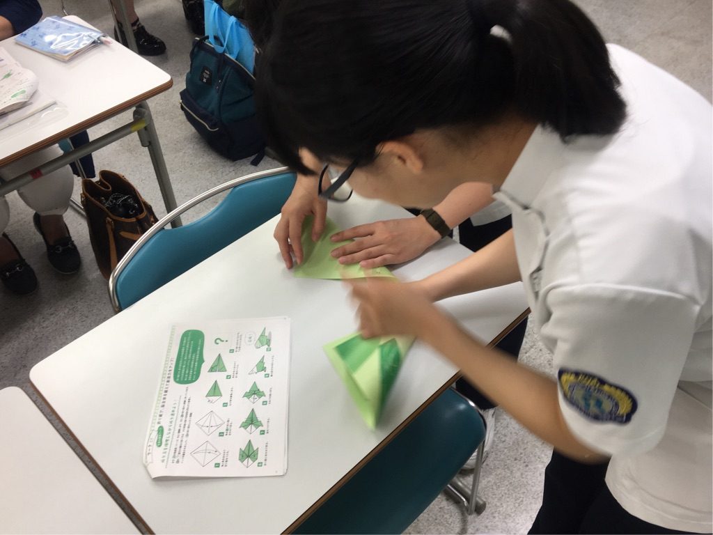 作業療法学科の学科説明では、実際の作業療法を少し体験してもらいました。作業療法的観点から折り紙をしてもらいましたが、みなさん苦戦しながらも楽しそうに体験されている姿が印象的でした。