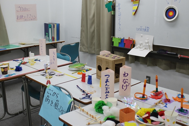 作業療法学科の先生による、ずらりと並んだ手作りおもちゃ博!