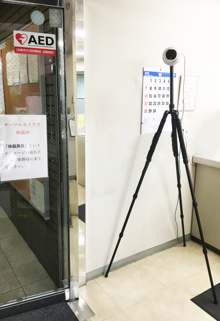 本校では、消毒マットやサーマルカメラを設置して、アルコール消毒など感染症対策を行っています。