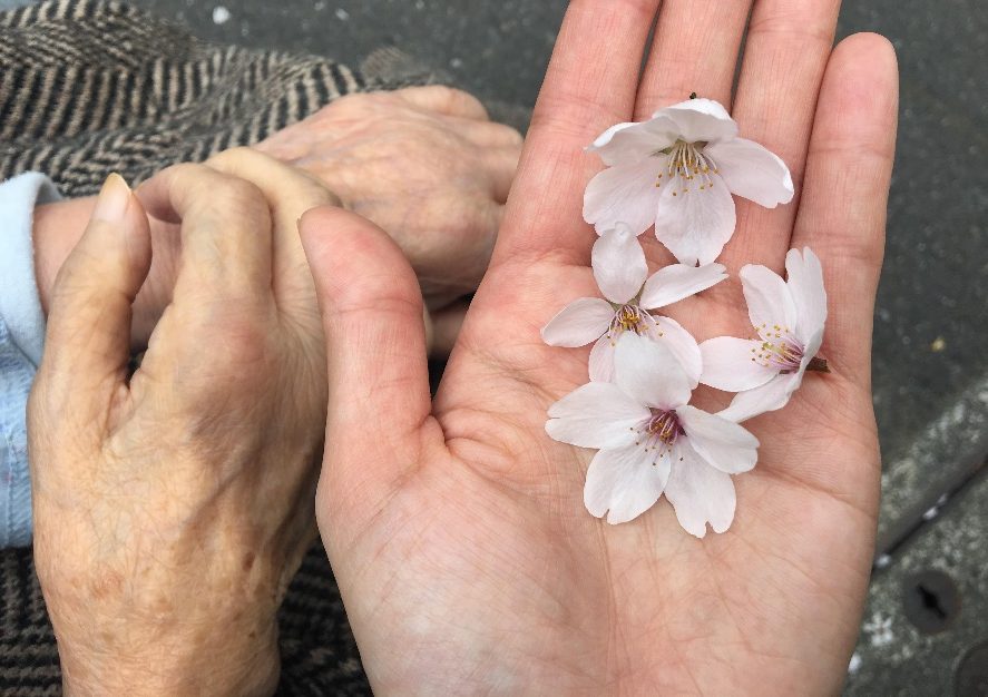 いつもは眠ってしまうことの多い方ですが、桜の木の下でパチッと目を開けて笑ってくださいました。