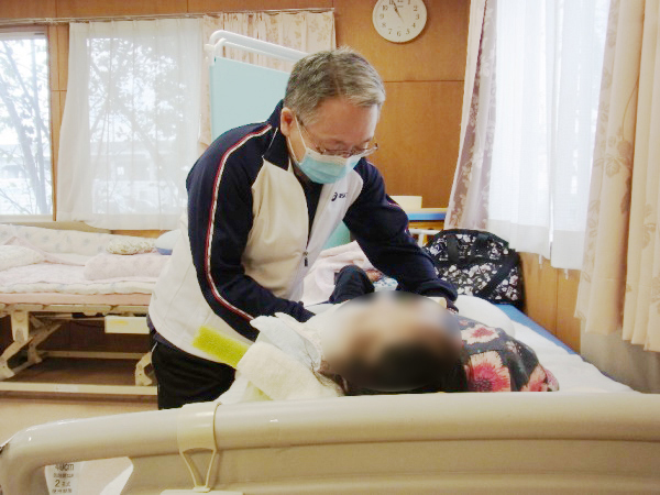 理学療法士として私の仕事は、利用者の方の身体機能の維持向上、拘縮予防、姿勢矯正、ポジショニング、呼吸介助、ケアしやすい体づくりになります。利用者の方の多くは、脳性麻痺や生まれつき心臓等に障がいがある方です。