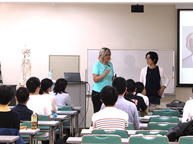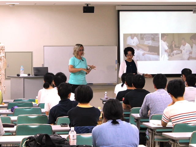 日本でMTI tokyo(マニュアルセラピーインターナショナル東京)が主催する講習会を日リハの教室で開催したのですが、その講師を務められているチェコの理学療法士でDNSのインストラクターでもあるマルセラ先生に、学生向けの特別講演を行っていただんです。