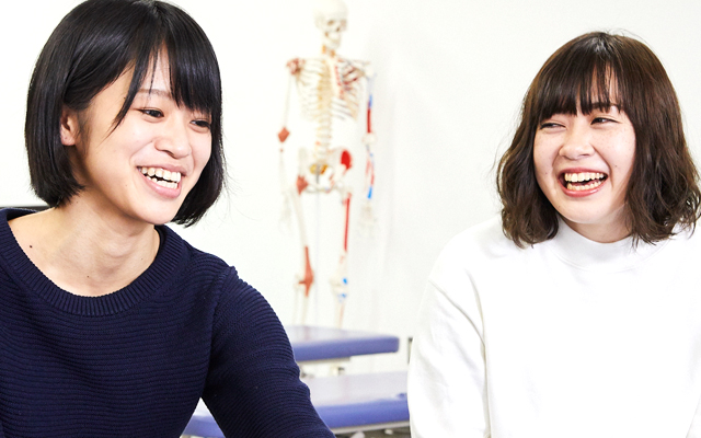 - 機所 最初は医療という分野に自分がついていけるか不安で、入学後もそれはありました。でも、同じ職業を目指す仲間たちと共に支え合いながら頑張ればきっと大丈夫、必ずやっていけると思います。友達や先生方がいてくれた安心感のおかげでいろいろなことを乗り越えられました。