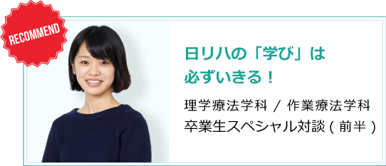 - Q. 進路を検討しているまだ見ぬ後輩たちへ日リハの先輩としてメッセージを。