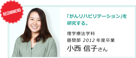 そして、なによりも印象的だったのは、説明してくださった作業療法学科の先生(近野先生と深瀬先生でした)の笑顔が素敵だったことです。あの笑顔を見て、「私もこんな風に笑顔で人と接し、患者様にも良い印象を持ってもらえる医療人になりたい」と思い、日リハで作業療法士を目指すことにしました。