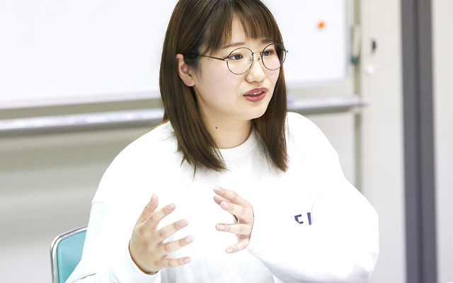 - やっぱり日リハで良かったと思っています。私たちのクラスは本当に仲のいいクラスで、放課後にも1つの教室をクラスで借りて、みんなで実技の練習をしています。行事が終わった後には、みんなで打ち上げを企画したりもしています。みんなで息抜きができるのは楽しいです。2年になってグループ学習が増えたのですが、みんなで協力して治療法などを考えていく授業が本当に大変で、考える事も多く自分の知識不足を痛感しました。ただ、本当に真剣に取り組んだので、終わった後はすごい達成感がありました。そんな大変な勉強も、クラスのみんながいるからできる事なのかもしれませんね。