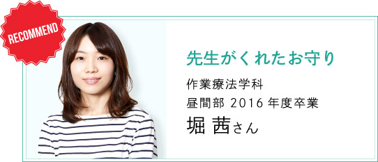 - 学生一人ひとりをしっかりと見てくださる先生方の手厚さと、オープンキャンパスでお話しした先輩方の「全員で作業療法士になろう」という、意識の高さに魅力を感じて、日リハに決めました。