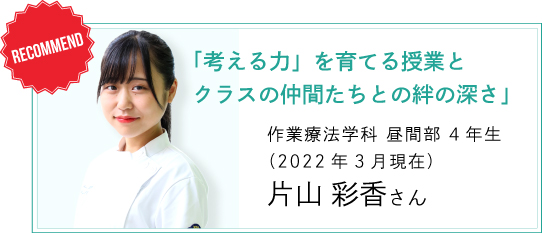 小学生の頃から介護の仕事に就きたいと考えていた宮内菜乃香さんが、作業療法士を目指したきっかけとは。日リハ入学から半年が経過した時点での振り返りや、2年生以降の学びや実習に対する想いを語っていただきました。