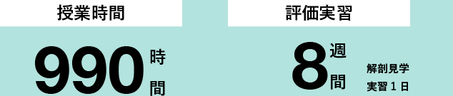 ・専門分野授業・学外での実習について、国が定める基準が1,890時間に対し、日リハでは2,570時間となっており、国の基準を大幅に上回っています。