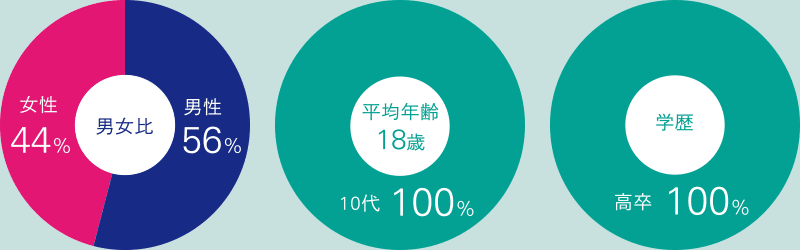 高校卒業後、すぐに入学される方が多く、同世代の仲間とともに成長できる環境です。