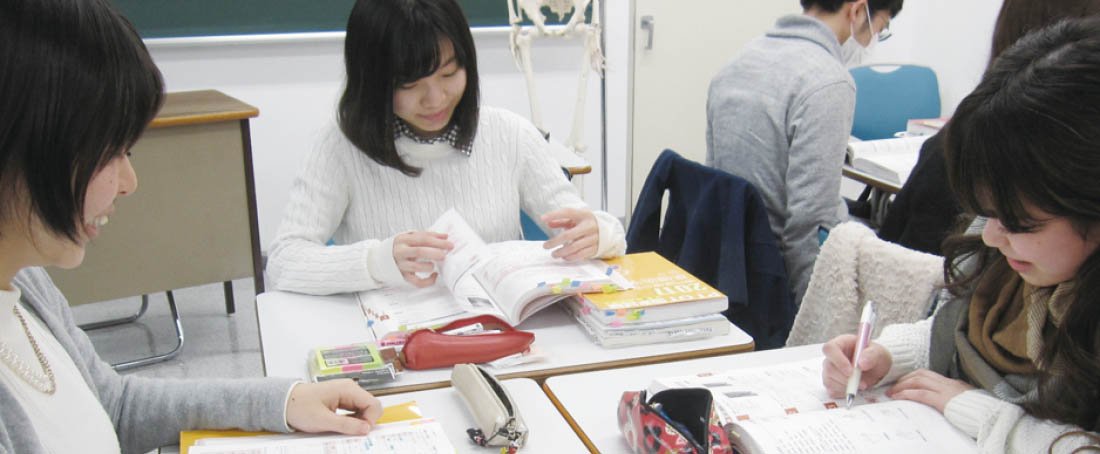 ・国家試験という最大の試練に向けて1年次から国試の枠組み、試験用の勉強の仕方、国試用の勉強の仕方を学び、そのうえでグループワークを多く用い、4年間をかけて取り組みます。