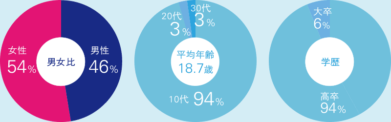 高校卒業後、すぐに入学される方が多く、同世代の仲間とともに成長できる環境です。