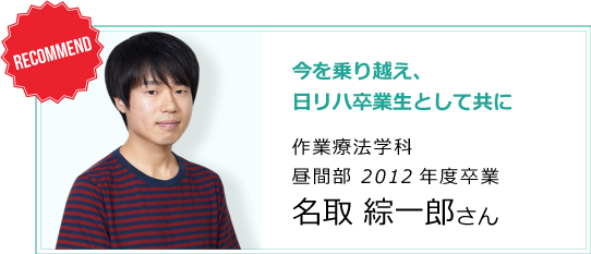 - Q. 最後に、これから日リハで作業療法士を目指す後輩にアドバイスやメッセージをお願いできますでしょうか?