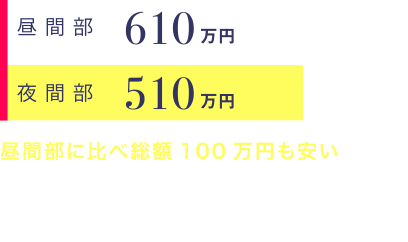 学費面で”どうしてもリハビリの学校に進学することが難しい”という高校生は少なくありません。そんな高校生には「夜間部での学び」をお勧めしています。リハビリ助手として収入を得ながら学ぶことで、保護者の学費負担を軽減することができます。また、クラス内では最も年下なので、先輩クラスメイトが様々な形でサポートしてくれます。昼間部よりも学費が100万円安く、しかもいろいろな経験を積むことができる夜間部で、皆さんもぜひ学んでみませんか?夜間部入学者のうち高校新卒生… 約40% ※2021年度新入生